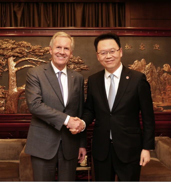 活动席间,姜波理事长与武尔夫亲切会谈,他介绍了学校的历史与发展规划,也阐释了“民间”国际交流的重要性,得到了武尔夫先生的高度认可。