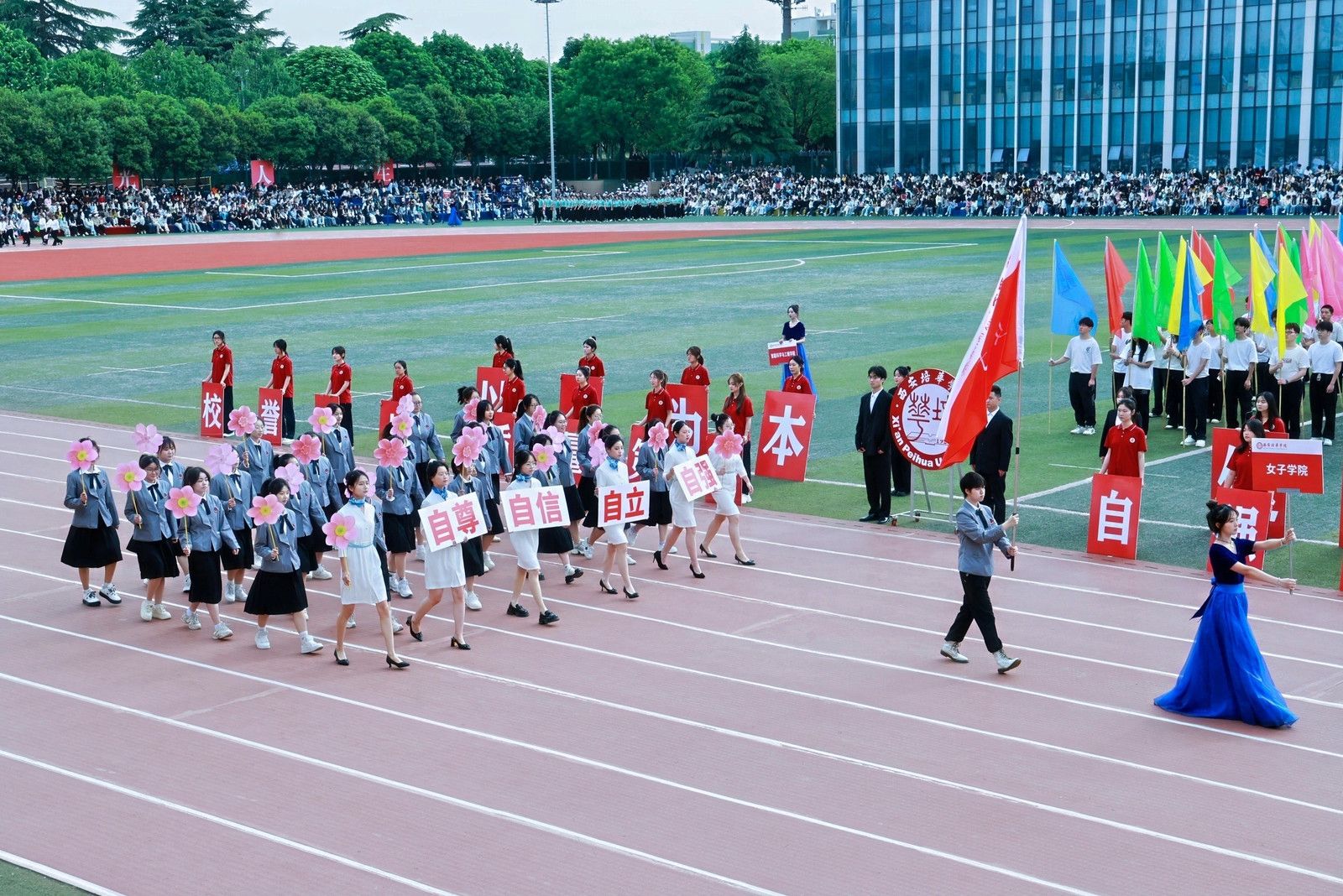 会计与金融学院学子,用民族与神话共舞多元风采,传媒与设计学院学子,执光影为翼转动时代的脉搏,体育学院学子脚步铿锵,目光如炬,浇筑“强国有我”的铮铮誓言!女子学院学子以优雅书写,“巾帼不让须眉”的当代注脚。