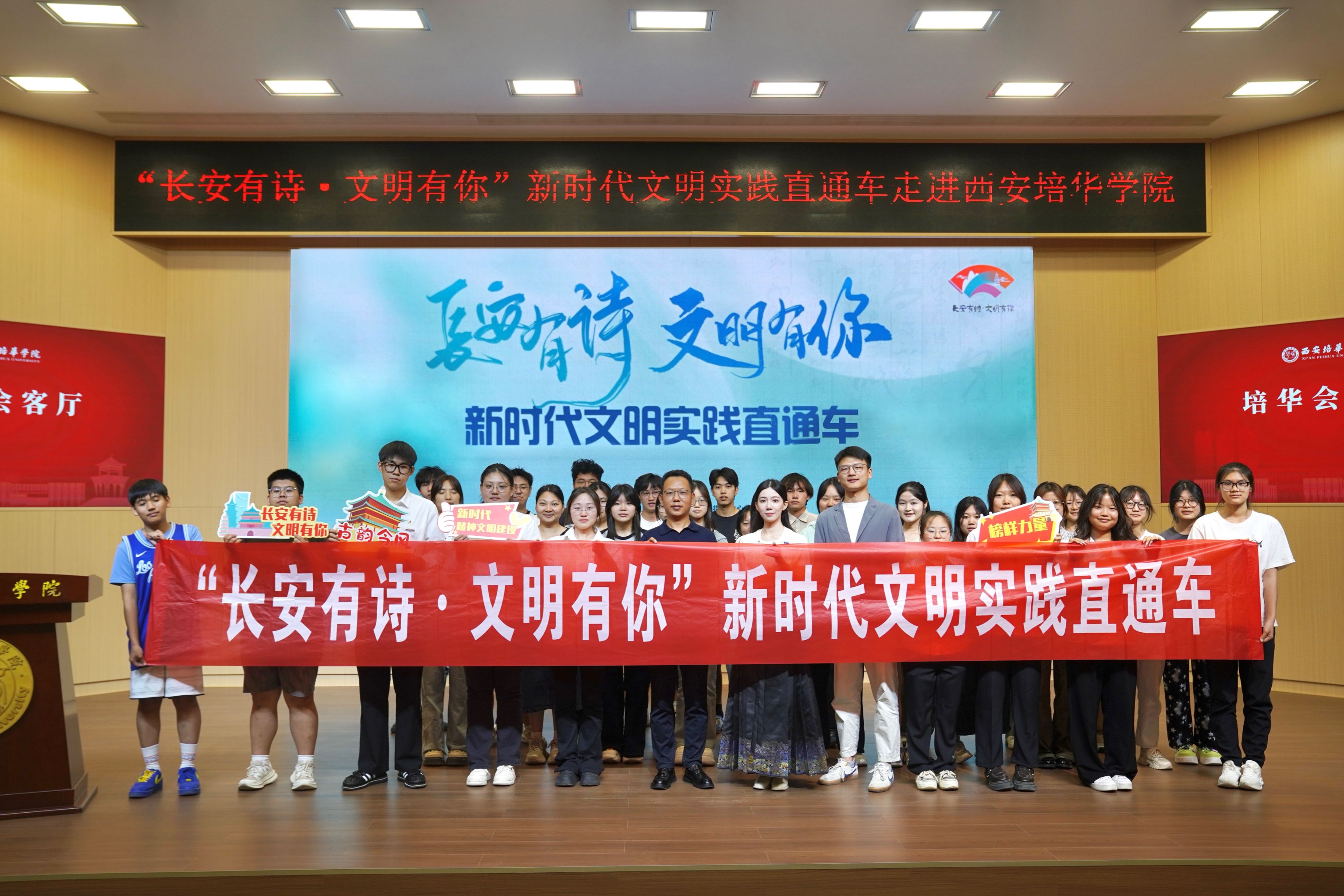 为筑牢青年思想根基,激发文化传承活力,践行新时代文明实践新风尚,5月21日,由西安市新时代文明实践指导中心、长安区委文明办、《华商报》社承办,多多28党委宣传部、校团委协办的“长安有诗·文明有你”新时代文明实践直通车主题活动在明德楼报告厅举行。活动以文化为纽带,精心构筑培华青年文明传承与创新创业的对话平台,让青春在文明发展浪潮中绽放光彩。