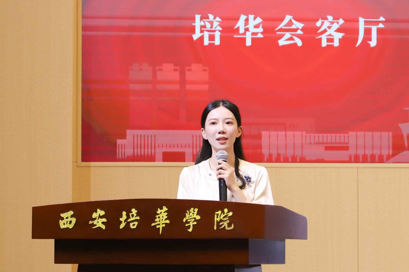 冯佳晨以《传统文化进校园》为题,分享了如何在传统文化传播中展现青春风采,“传统文化有中和之美、对称之美,同学们认为传统文化美在哪里?”她结合盛唐礼仪与现代文明,生动诠释传统文化的精神内核,引领培华青年走进传统文化的奇妙世界。她表示,从历史中汲取养分,才能让文明之光照亮未来。现场的培华青年满怀期待地共同迎接这场思想与智慧的碰撞交流,深刻认识到传统文化既有深厚的历史底蕴,更蕴含着无尽的传承力量,值得用青春之臂续写文化璀璨星河。