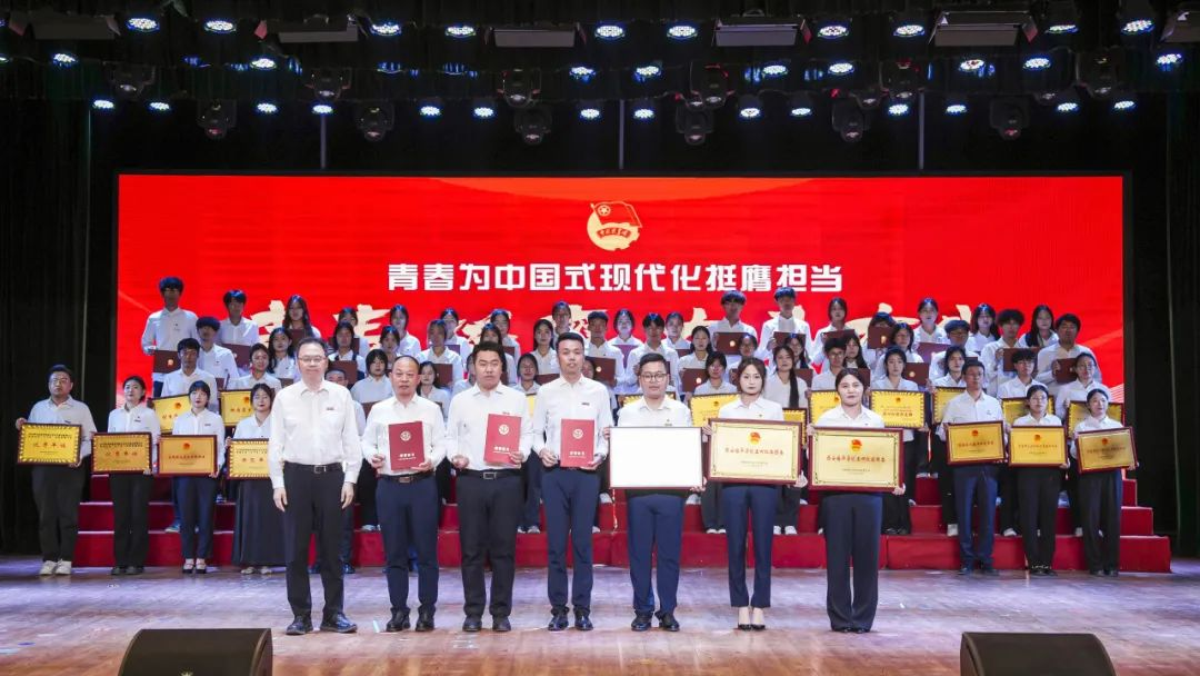 当晚,“青春挺膺 奋斗有我”2025年共青团表彰大会在大学生活动中心举行,理事长姜波致辞,副校长、党委副书记姚文静宣读表彰文件。校团委书记董莹主持。