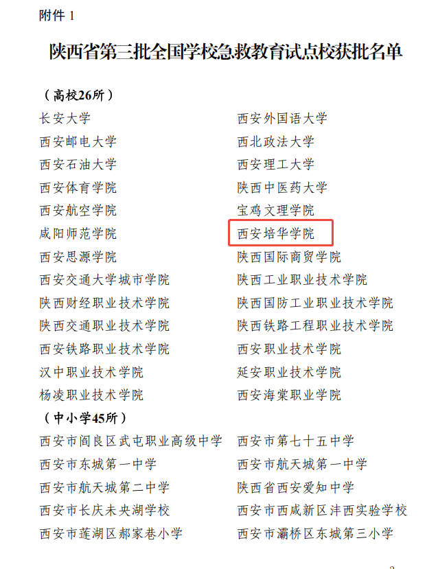 近日,陕西省教育厅办公室正式公布第三批全国学校急救教育试点校获批名单,经学校申报、省教育厅复核、公示等程序,多多28成功入选。