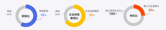 软件工程专业拥有一支教学能力强、科研水平高、实战经验丰富的师资队伍。教师中硕士研究生及以上学历达100%,其中博士及在读博士占比25%,高级职称教师占比56%,具备企业一线研发背景的教师占比高达66%。专业推行双师共育培养战略,锻造“双师型”师资队伍,教师深度融入头部企业实践,将产业前沿技术反哺课堂教学;团队将鸿蒙系统开发、AI数据分析等前沿技术深度融入课堂教学,并依托真实项目案例展开教学,使学生在校期间即可体验企业级开发全流程,切实达成“课堂即职场”的培养目标。