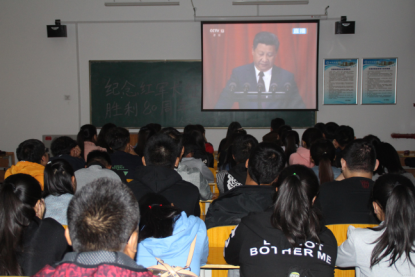 中午12:00,由传媒学院团总支组织部、宣传部部长组织学院各班班长及团支部成员参加“纪念长征胜利八十周年系列活动”。大会第一项,全体起立,奏唱共青团团歌。传媒学院各班级也积极开展“纪念长征胜利八十周年“主题团日活动。各个班级都以演讲、讲故事等不同的形式展开活动。2016级广播电视编导一班的班会气氛活跃,同学们以抢答、观影的形式,来表达内心对长征精神的敬佩和传承长征精神的决心。2016级新闻专业的学生用一首红军歌来纪念长征胜利八十周年。而2016级播音二班的同学则进行了庄严的宣誓仪式。