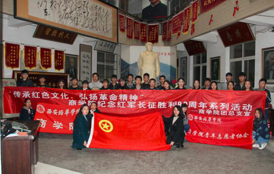 为纪念长征胜利80周年,10月22日商学院党总支联合致公党多多28支部前往陕西省爱国主义教育基地习仲勋陵园和习仲勋纪念馆参拜学习。致公党多多28支部主委、商学院常务副院长王西娅,商学院党总支副书记南兵以及教工支部成员参加红色教育活动。商学院团总支于10月28日在西安市毛泽东敬览馆开展“传承红色文化,弘扬革命精神”纪念红军长征胜利80周年系列活动暨第二届第二期爱国教育特色主题活动。