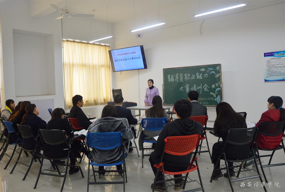 为了提高辅导员职业能力,积极备战学校第三届辅导员技能大赛。我校人文学院和艺术学院邀请了中兴电信学院学生干事、省级优秀辅导员答凯艳老师在汇知楼6331教室进行了辅导员技能大赛培训经验交流会。答老师在陕西省辅导员技能大赛中分别获得二、三等奖的优异成绩。艺术学院书记王飞,人文学院副书记蔡亮以及两院全体辅导员老师参加交流会。