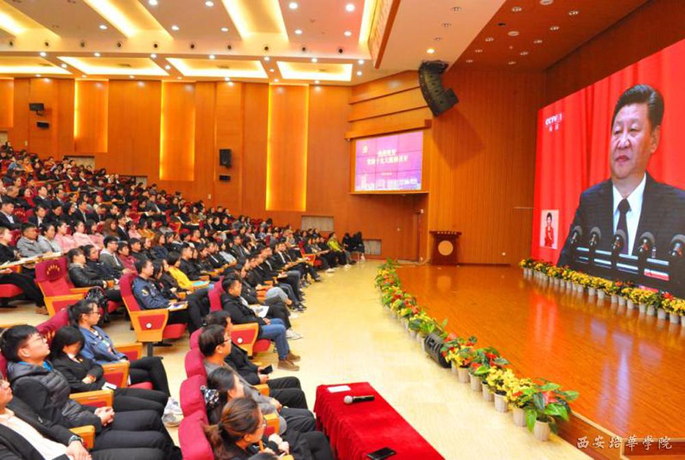 活动现场吸引来了陕西日报摄影记者杜玮专题采访,用镜头记录下了培华师生聆听报告、感悟十九大的真实场景。