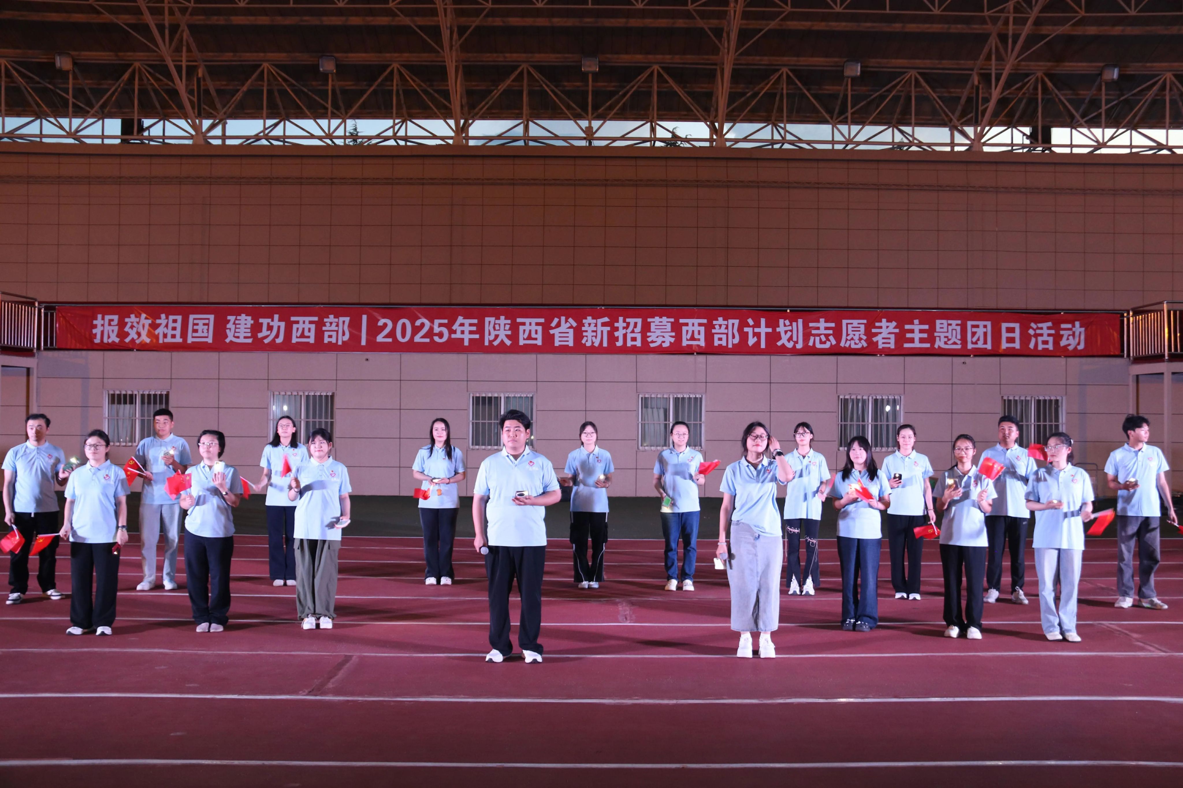 出征仪式上,与会领导为2025年新招募在陕服务西部计划志愿者赠送出征装备,为2025年陕西省大学生志愿服务西部计划陕西服务总队和各服务分队授旗,全体西部计划志愿者庄严宣誓,集体发出了“清澈的爱,只为中国”的青春誓言。