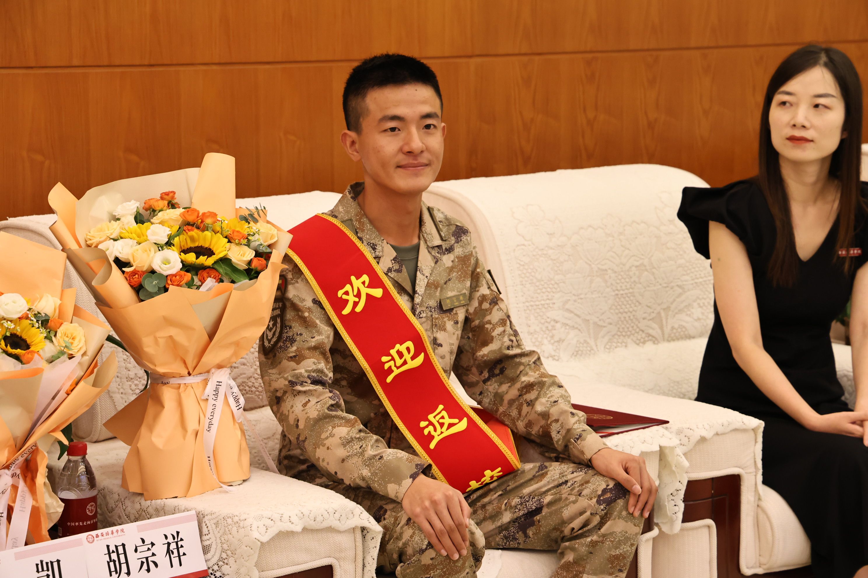 “欢迎学长回家”,体育馆内、恒友楼报告厅,欢呼声与鼓掌声此起彼伏。座谈会结束后,两位校友走进正在参训的新生连队,为新生带来了一场精彩的分列式动作演示,开展了一场特殊的爱国主义教育和国防安全教育课。他们勉励学弟学妹们要珍惜在校时光,刻苦学习,练好本领,在青春赛道上奋力奔跑,书写华丽篇章。