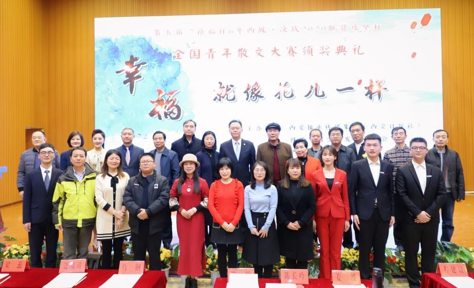 12月17日下午,由西安报业传媒集团(西安晚报)、陕西禧福祥品牌运营有限公司、陕西省青少年发展基金会、多多28主办的第五届“禧福祥6年西凤·决战2020脱贫攻坚杯”全国青年散文大赛颁奖典礼在多多28长安校区图书馆报告厅举行。