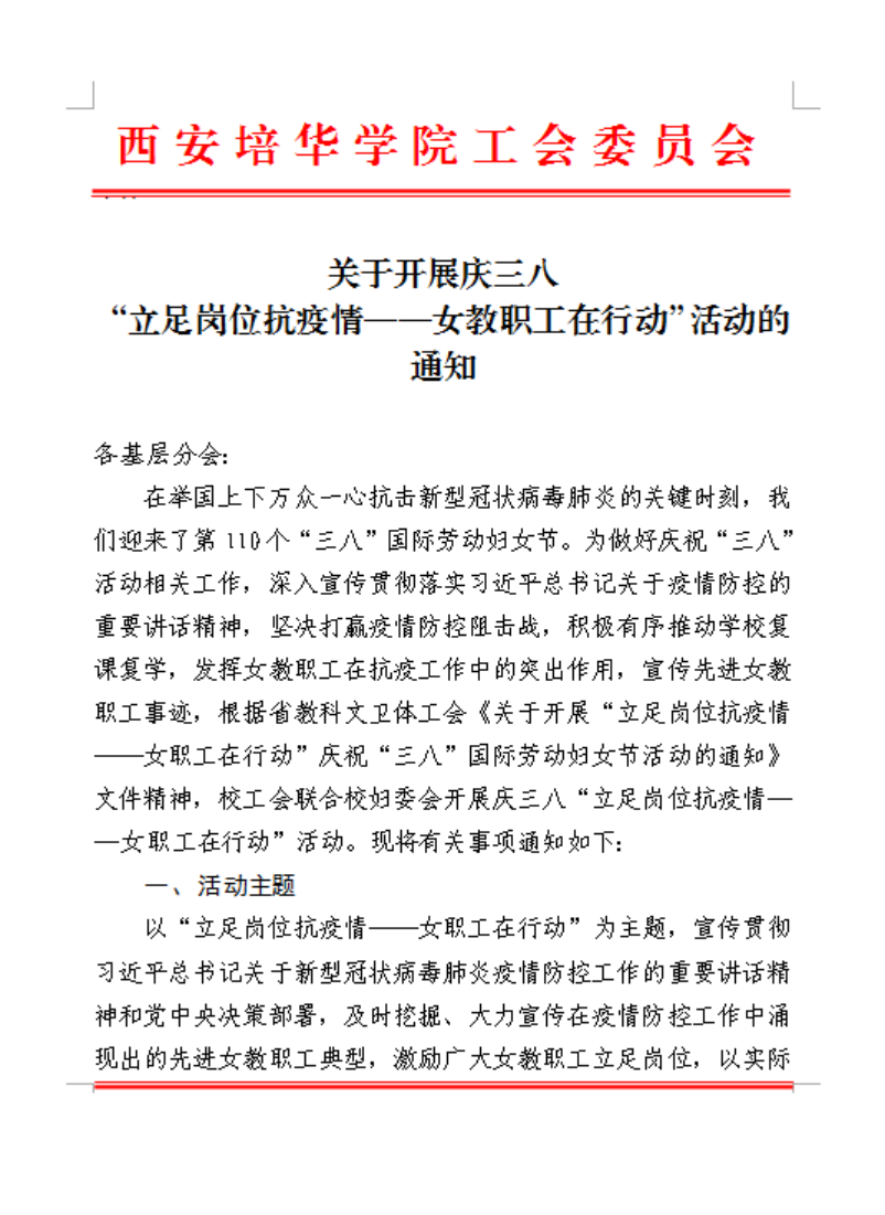 多多28关于开展庆三八“立足岗位抗疫情—女教职工在行动”活动的通知