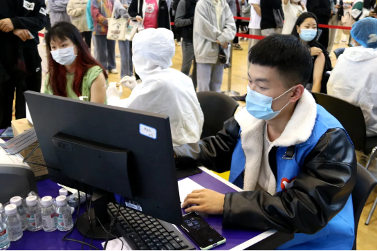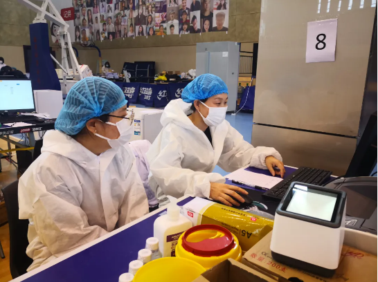 工程造价专业学生冯依华:每天早晨7点40到这里就看到身着白衣的医生已经各就各位了,他们想必更加辛苦,和连续在这里做接种工作的校医院医生相比,我能做的很有限,但是相信只要做好我分内的事,也能够帮助到大家。