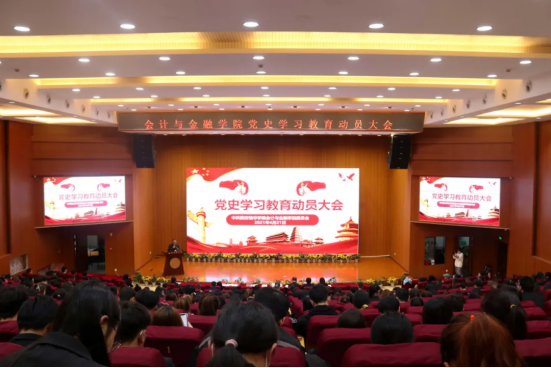 会计与金融学院院党委书记史立军作了动员讲话,他提到:没有共产党就没有新中国,这是我们耳熟能详的一首歌,这是一段根植灵魂的旋律,在庆祝我们党百年华诞的重大时刻,在两个一百年奋斗目标历史交汇的关键节点,党中央决定在全党集中开展党史学习教育,这是党中央立足党的百年历史新起点,统筹中华民族伟大复兴战略全局和世界百年未有之大变局,为动员全党全国人民满怀信心投身全面建设社会主义现代化国家而作出的重大决策,这也是当前和今后一段时间的重大政治任务。通过本次学习教育动员大会,史立军书记总结要从党史学习教育中接受精神洗礼、将学习党史同立德树人结合起来、在学习党史教育中的方式方法要创新、要学习传承中国共产党在长期奋斗中铸就的伟大精神四个方面进行动员。同时他表示在今后的学习教育中要有序推进每个步骤,扎实做好各个环节,确保学透党史、学深思想、学出成效,以优异的成绩庆祝建党100周年,努力为实现中华民族伟大复兴的中国梦作出新的更大贡献。