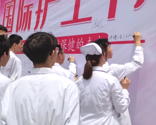5.12护士节之际,领导和老师对从事护理教育的老师和即将成为护士的医学生们表示祝贺,希望同学们能将甘于奉献、敢于献身的南丁格尔精神继续发扬,以南丁格尔为榜样,学好专业知识,提高技术能力,树立良好的医德,随时待命。