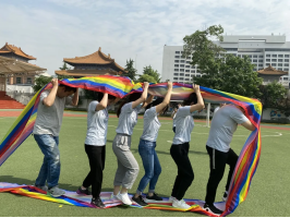 清晨伴着小鸟的歌声,学校会计与金融学院的青年志愿者们身穿小红衣,在人群中忙忙碌碌。运动会以趣味性运动项目为主,融合了运动竞技、智慧技巧和团体协作,有党史知识我来答、红色密码我来拼、同舟共济接力赛、齐心协力鼓干劲、脚踏实地勇向前等活动。
