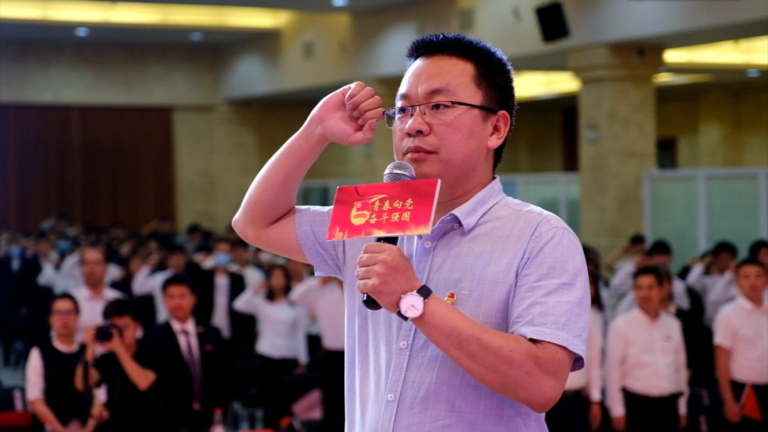 迎团旗入场、校团委副书记屈先锋带领团员重温入团誓词