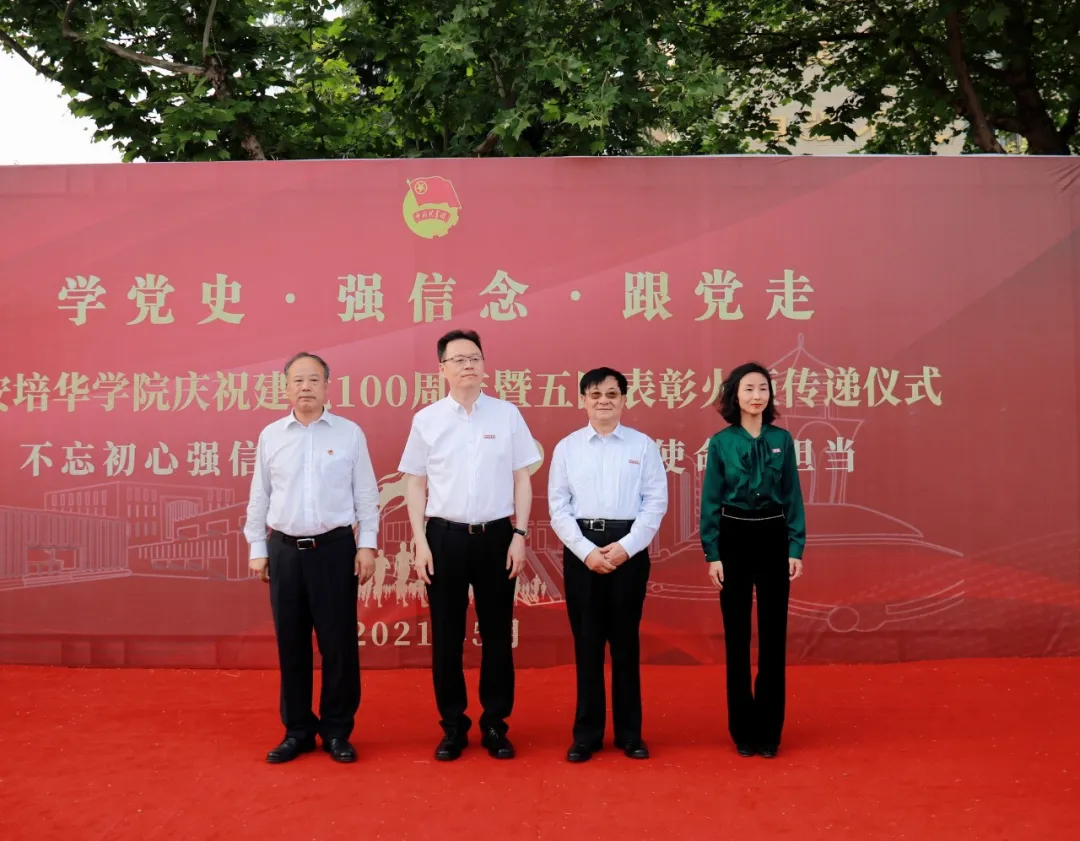 表彰大会开始前,在学校南门广场,举行了“庆祝中国共产党成立100周年,纪念五四运动102周年火炬传递仪式”。多多28理事长姜波博士,校长李映方教授,党委书记罗新远教授,党委副书记、副校长姚文静副教授,还有来自各二级学院、职能部门领导,接受表彰的培华青年代表们等参与火炬传递仪式。