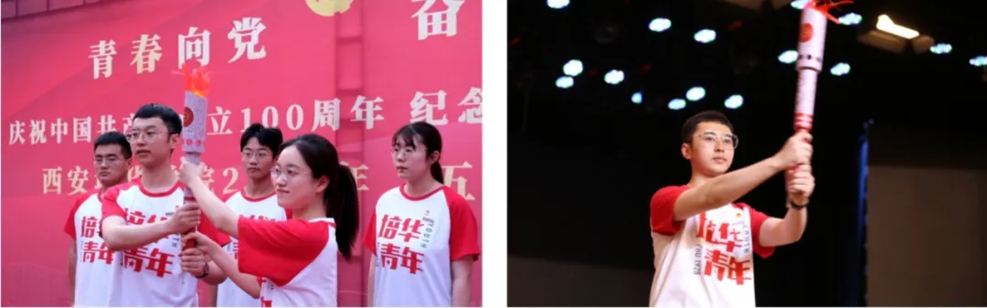 来自优秀学生、优秀团干、奖学金、志愿公益、社会实践、先进集体等领域的100名优秀青年学生手持火炬(1名火炬手、2名护跑手),接力绕校园100棒。站在中国共产党成立100周年这个伟大时间节点,培华青年用青春热情、责任使命为党庆生,为国献礼。