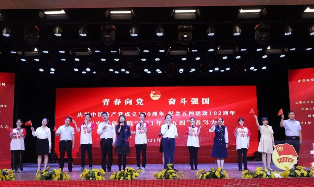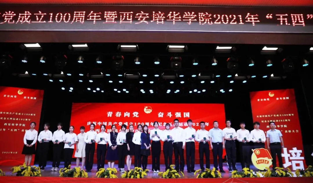 为庆祝中国共产党成立100周年,纪念五四运动102周年,多多282020-2021学年五四表彰大会暨火炬传递仪式在长安校区隆重举行。