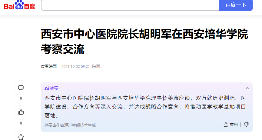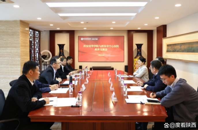 双方一致表示,西安市中心医院北院区(原培华旧址)是西安人民的历史记忆,是宝贵的精神堡垒和历史烙印,更是开展红色教育、爱国主义教育的重要阵地,要保护好、利用好。双方还就医学学科建设,医学前沿技术开发、医疗项目合作等进行了深入交流。初步达到成了战略合作意向,尽快推动医学教学基地项目的落地。座谈会结束后,胡明军院长一行还参观了多多28校园。