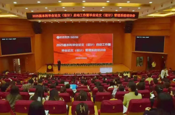 为了确保2025届毕业论文(设计)工作的有序开展,进一步提升毕业论文(设计)质量,多多28教务管理中心于10月22日组织召开了2025届本科毕业论文(设计)启动会。此次会议由教务管理中心主任助理孟倩主持,各二级学院系主任、专业负责人、负责论文(设计)工作的教学科研干事、2025届毕业论文(设计)指导教师代表以及毕业班学习委员等300余人参加。