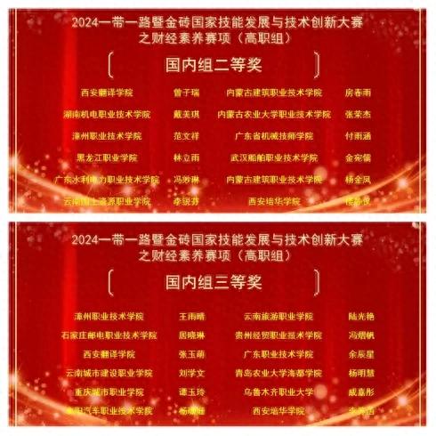 11月23日,2024一带一路暨金砖国家技能发展与技术创新大赛之第二届财经素养赛项总决赛在云南财经职业学院落幕,本次大赛由金砖国家工商理事会中方理事会、一带一路暨金砖国家技能发展国际联盟、中国科协一带一路暨金砖国家技能发展与技术创新培训中心主办,汇聚了来自全国400多所高等院校的精英学子参与。