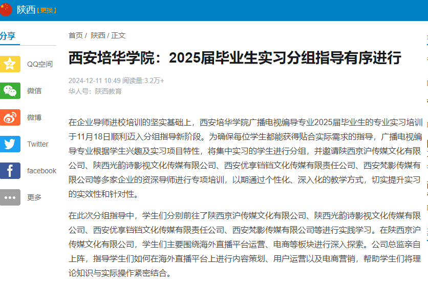 在此次分组指导中,学生们分别前往了陕西京沪传媒文化有限公司、陕西光韵诗影视文化传媒有限公司、西安优享铛铛文化传媒有限责任公司、西安梵影传媒有限公司等进行实践学习。在陕西京沪传媒文化有限公司,学生们主要围绕海外直播平台运营、电商等板块进行深入探索。公司总监亲自上阵,指导学生们如何在海外直播平台上进行内容策划、用户运营以及电商营销,帮助学生们将理论知识与实际操作紧密结合。