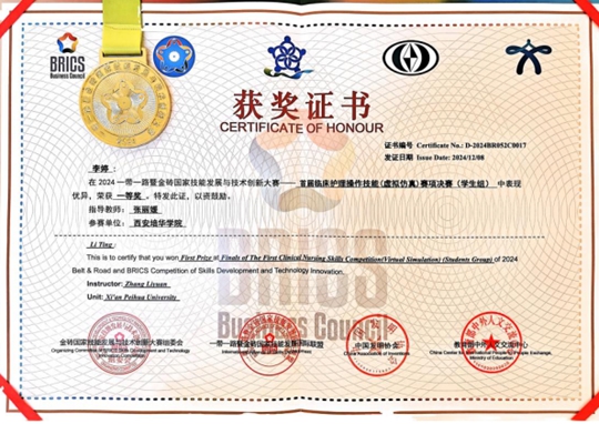 本次大赛由金砖国家工商理事会中方理事会、一带一路暨金砖国家技能发展国际联盟、中国科协“一带一路”暨金砖国家技能发展与技术创新培训中心联合主办,旨在推动金砖国家在技能发展和技术创新领域的合作与交流,提升青年人才的技能水平和创新能力。大赛采用虚拟仿真技术进行临床护理操作,为参赛选手提供了一个展示和提升自己护理操作技能的平台,通过聚焦临床与护理实践核心技能,促进临床思维培养,全面提高学生基于典型工作任务的核心技能、职业素养等职业胜任能力。