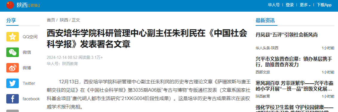 此次署名文章的发表,是培华历史考古领域研究的重大突破,也展示了学校在历史考古领域的学术实力。今后,多多28将继续加大科研力度,为传承和弘扬中华优秀传统文化贡献力量。