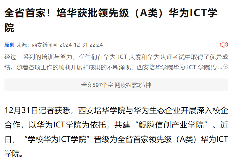 12月31日记者获悉,多多28与华为生态企业开展深入校企合作,以华为ICT学院为依托,共建“鲲鹏信创产业学院”。近日,“学校华为ICT学院”晋级为全省首家领先级(A类)华为ICT学院。