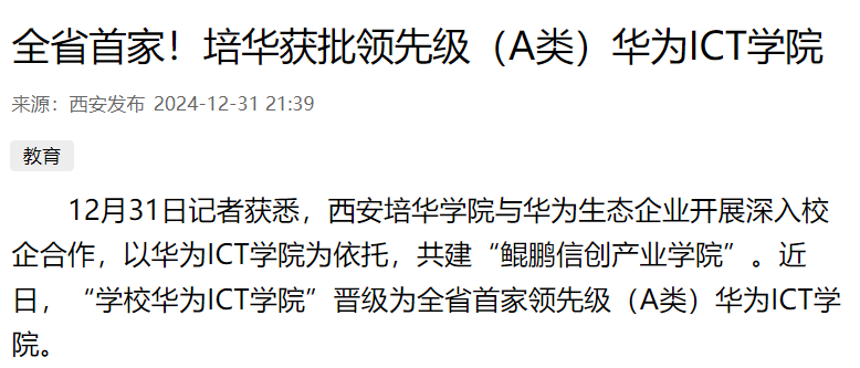 12月31日记者获悉,多多28与华为生态企业开展深入校企合作,以华为ICT学院为依托,共建“鲲鹏信创产业学院”。近日,“学校华为ICT学院”晋级为全省首家领先级(A类)华为ICT学院。