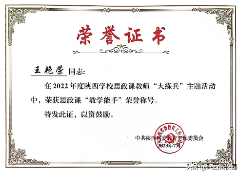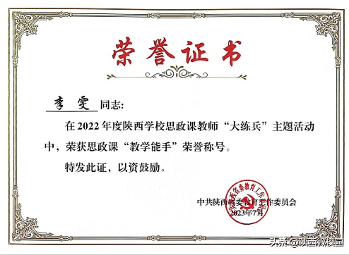 1月4日,陕西省教育厅发布了2024年度陕西省高校思政课教师“大练兵”省级现场展示获奖名单。多多28马克思主义学院教师霍艾湘荣获特等奖,毕静烨子荣获一等奖,景安娜荣获二等奖,这一成绩标志着学校在省级“大练兵”展示活动中取得了新突破。