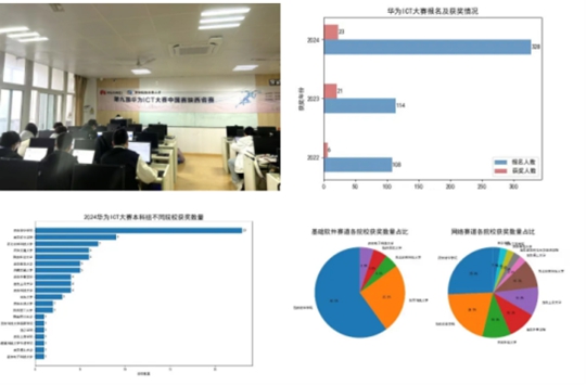 为了提升学生的专业技能与实践能力,学院以华为ICT大赛为重要抓手,积极组织各类活动。学院开展ICT行业认知讲座,深入浅出地介绍了ICT行业的广阔前景和发展趋势,让新生们对所学专业有了更清晰的认识,激发了学生的学习兴趣和热情。学校还针对华为ICT大赛展开了全面而系统的辅导工作,邀请讯方公司讲师分别为学生开展计算赛道openEuler和openGauss方向、云赛道、网络赛道的线下培训辅导。企业讲师凭借丰富的经验和专业的知识,为学生们详细讲解了各个赛道的核心知识点、技术难点以及解题技巧,通过案例分析、实践操作等方式,让学生们在理论与实践的结合中不断提升自己的能力。