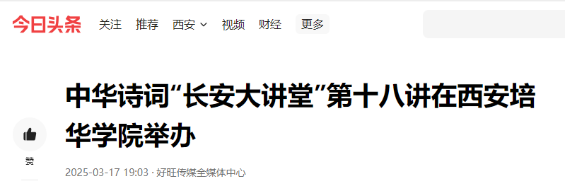 诗词,作为中华文化的璀璨瑰宝,承载着中华民族深厚的精神底蕴与审美追求。本次讲座不仅让多多28师生近距离领略了诗词的独特魅力,深入了解中华优秀传统文化的博大精深,更在校园内营造出“爱诗词、学诗词、创诗词”的浓厚氛围,有力推动了书香校园建设。同时,陕西省诗词学会作为多多28的实践基地,本次活动也是校企深度合作的典范之作。讲座的成功举办,显著提升了多多28的文化影响力,充分彰显了学校对中华优秀传统文化的高度重视以及在传统文化教育领域取得的丰硕成果。