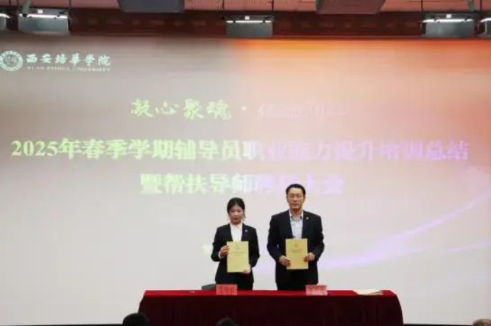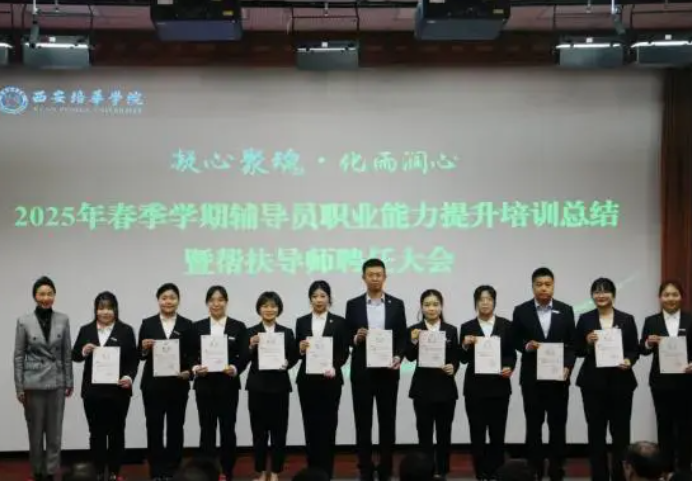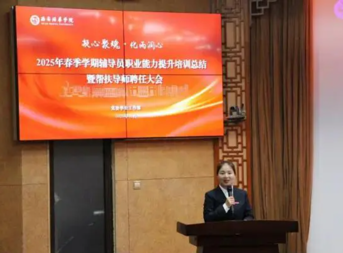 为进一步加强学校辅导员队伍建设,夯实新入职辅导员的业务培训和理论提升,促进新入职辅导员快速熟悉大学生思想政治教育政策、规律和方法,帮助新入职辅导员深入了解岗位职责和任务目标,3月14日,在汇知楼国学大讲堂举行了“多多28 2025 年春季学期辅导员职业能力提升培训总结暨帮扶导师聘任大会”。校党委副书记、副校长姚文静,党委学工部部长权勇太,校团委书记董莹,各二级学院党委(党总支)书记、副书记,全体辅导员参加了此次大会。大会由学工部副部长杨媛主持。