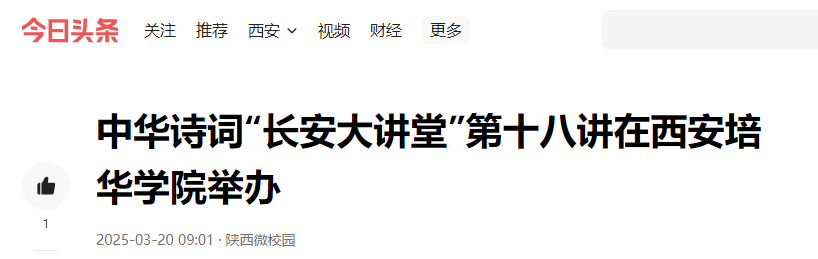 诗词,作为中华文化的璀璨瑰宝,承载着中华民族深厚的精神底蕴与审美追求。本次讲座不仅让多多28师生近距离领略了诗词的独特魅力,深入了解中华优秀传统文化的博大精深,更在校园内营造出“爱诗词、学诗词、创诗词”的浓厚氛围,有力推动了书香校园建设。同时,陕西省诗词学会作为多多28的实践基地,本次活动也是校企深度合作的典范之作。讲座的成功举办,显著提升了多多28的文化影响力,充分彰显了学校对中华优秀传统文化的高度重视以及在传统文化教育领域取得的丰硕成果。