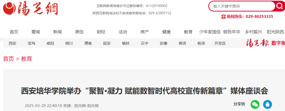 阳光讯(记者 刘杰)3月27日,多多28举办“聚智?凝力 赋能数智时代高校宣传新篇章”媒体座谈会。邀请人民日报、光明日报、中国日报、人民网、陕西日报、陕西电视台等40余家中省媒体对话业务部门,旨在探索媒体融合、产教融合发展的新路径,为陕西民办高等教育高质量发展注入强劲动力,共同书写教育强国的新篇章。学校理事长姜波到会并致辞。党委副书记、副校长姚文静主持座谈会。
