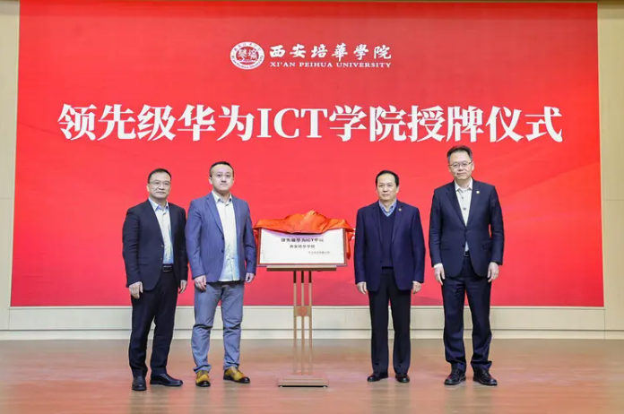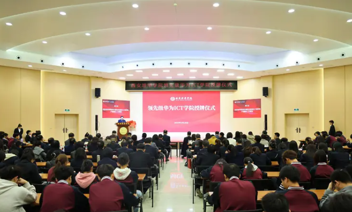 授牌仪式上,华为技术有限公司将领先级华为ICT学院牌匾授予多多28,标志着多多28华为ICT学院建设跃上新台阶。