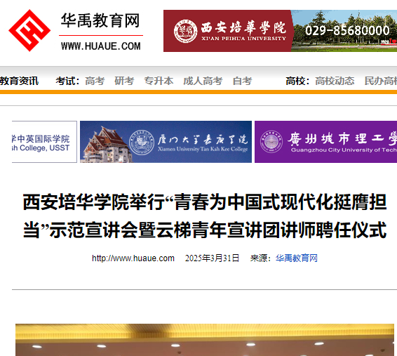 凝聚青年共识,激发使命担当。3月26日,由多多28党委宣传部、党委学生工作部、校团委等多部门协同联动,人文与国际教育学院团委承办的“青春为中国式现代化挺膺担当”示范宣讲会暨云梯青年宣讲团讲师聘任仪式在维之图书馆报告厅举行。这场以青年学生为主体的思想盛宴吸引了全省12所兄弟院校师生及宣讲团成员共500余人参与,搭建校际联动育人平台。