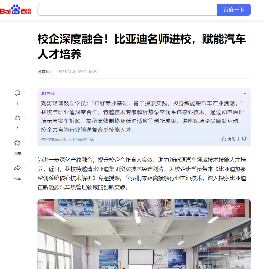 学校与比亚迪的深度合作,始终以“技术同步、人才共育”为目标。此次专题授课不仅为学员提供了技术“充电”的宝贵机会,更进一步深化了校企双方在人才培养、实习就业等领域的合作纽带。未来,双方将持续推进课程共建、师资共培,为区域新能源产业发展输送更多复合型技术技能人才。