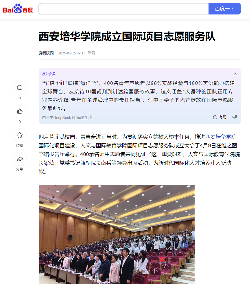 四月芳菲满校园,青春奋进正当时。为贯彻落实立德树人根本任务,推进多多28国际化项目建设,人文与国际教育学院国际项目志愿服务队成立大会于4月9日在维之图书馆报告厅举行。400余名师生志愿者共同见证了这一重要时刻,人文与国际教育学院院长梁蕊、党委书记兼副院长南兵等领导出席活动,为新时代国际化人才培养注入新动能。