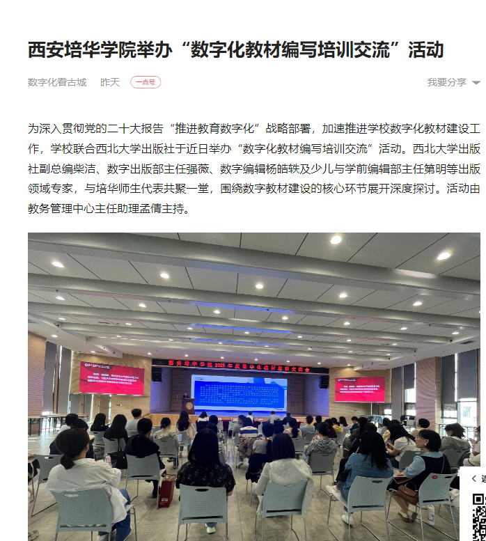 活动获得了一线教师的普遍欢迎,参训教师与出版社编辑团队就数字教材开发中的技术难点、资源整合、交互设计等问题展开深度交流。
