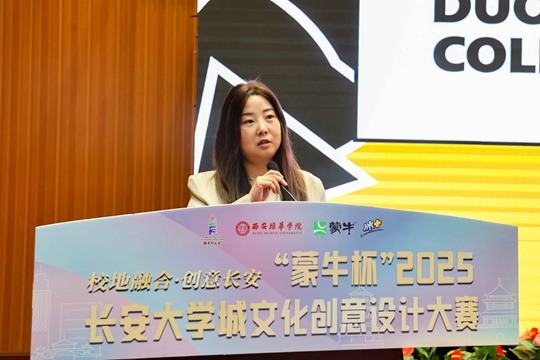 最后,主持人宣布“蒙牛杯”2025长安大学城文化创意设计大赛正式启动,期待通过大赛平台,激发青年学生的创新潜能,将传统与现代融合,创造出既有文化底蕴又符合市场需求的优秀文化创意产品。
