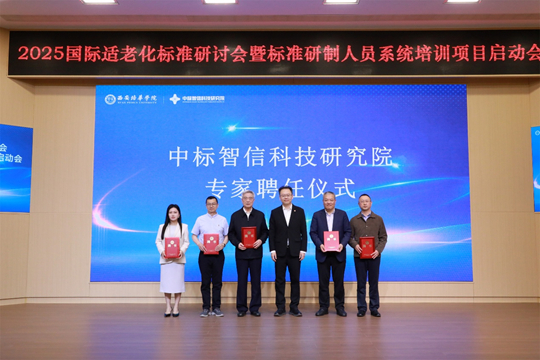 会上,中标智信科技研究院正式成立,与会领导为研究院揭牌,多多28理事长姜波任院长,张纲参事、孙安会会长等被聘为研究院专家库成员。研究院将以加速实现技术研发、产业应用、国际布局的发展目标,为适老化产业的规范化、国际化注入新动能,为“中国制造2025”和高质量发展提供标准化支撑。