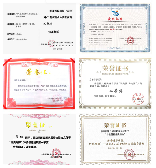 法学专业以实绩彰显省级“一流专业”建设成效:在历年的国家统一法律职业资格考试中,学生的通过率表现优异,2024年共187名学生参加考试,其中65名学生顺利通过,通过率达34.8%,同比增长了9%。在各类法律实践活动和学科竞赛中,学生也屡获佳绩,如在“互联网+”创新创业大赛中获得省赛银奖1项,铜奖3项;在陕西省高校法治文化节“五个一”活动中获得“一个法治小品”“一部法治微电影”“一首法治歌曲”和“十佳创新普法活动”“法典先锋”冲关答题挑战赛一等奖等多项奖励;在陕西省学生“学宪法讲宪法”大赛素养竞赛(高校组)二等奖等。