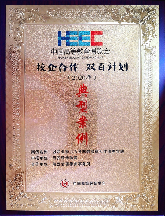 《以职业能力为导向的应用型法律人才培养实践》项目被中国高等教育学会认定为“校企合作 双百计划”典型案例