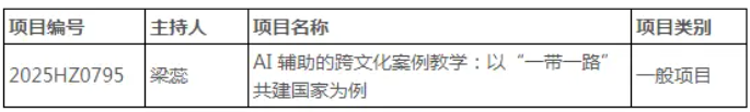 国际中文教育专项领域,人文与国际教育学院申艳霞教授团队承担的《国际中文教育视域下习近平文化思想国际传播话语体系构建研究》,首次将习近平文化思想与语言教育深度融合,为中华文化国际传播能力建设开辟新路径。此外,跨文化交际专项课题聚焦“一带一路”主题,探索人工智能技术在跨文化案例教学中的应用模式,推动教育技术与人文研究的交叉创新。