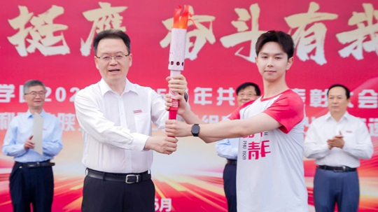 火炬传递仪式上,校长李映方宣布仪式启动,理事长姜波为火炬点火并发布起跑指令。培华七个二级学院千余名青年学子携手,以“青春挺膺奋斗有我”为主题,开启了一场歌声接力。