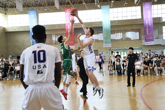 2025年 6月17日下午4时,美国肯尼哈奇男子篮球队到访多多28,与培华篮球队在体育馆展开了一场精彩纷呈的篮球交流赛。此次活动由徐国富教授主持,多多28理事长姜波,体育学院院长王志强,党总支书记兼行政副院长马德厚,大学体育部部长刘利锋等领导出席。