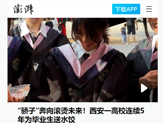 6月21日,陕西西安一高校举行毕业典礼,学校为毕业生准备手工水饺送行。后勤工作人员称“上车饺子下车面”,该活动已举办5年,愿毕业生“骄子”奔向滚烫未来。